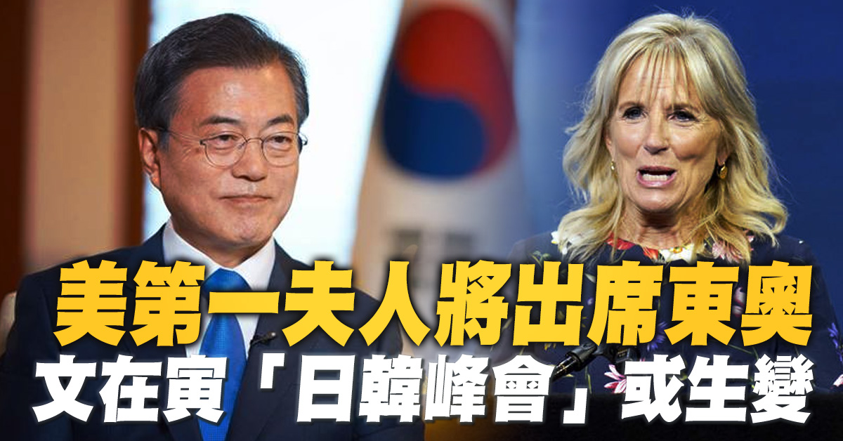 【新唐人亞太台 2021 年 07 月 14 日訊】接著來看到,日本東京奧運即將在23號開幕。美國白宮表示,美國第一夫人吉兒將率領代表團出席東奧開幕式。而先前可能出席的韓國總統文在寅,由於日本國防白皮書重申獨島主權,引發韓國不滿,讓文在寅訪日再生變數。