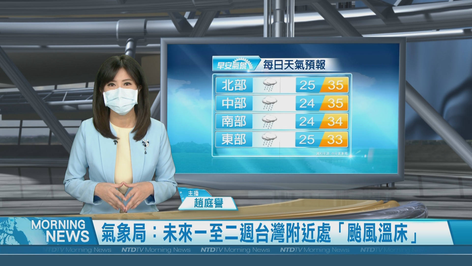 【新唐人亞太台 2021 年 07 月 16 日訊】歡迎您收看7月16日的早安新唐人,我是趙庭譽,先來帶您關心天氣。從今天一直到周末假日,天氣型態都類似,各地晴朗炎熱,氣象局指出,未來一至二週,台灣周邊都會處於被稱為「颱風溫床」的大低壓區,不論熱帶系統是否侵台,都會帶來海上暖濕水氣,所以中午後都會有午後雷陣雨,降雨範圍會因風向而改變。帶您一起來看到國際媒體重要訊息。