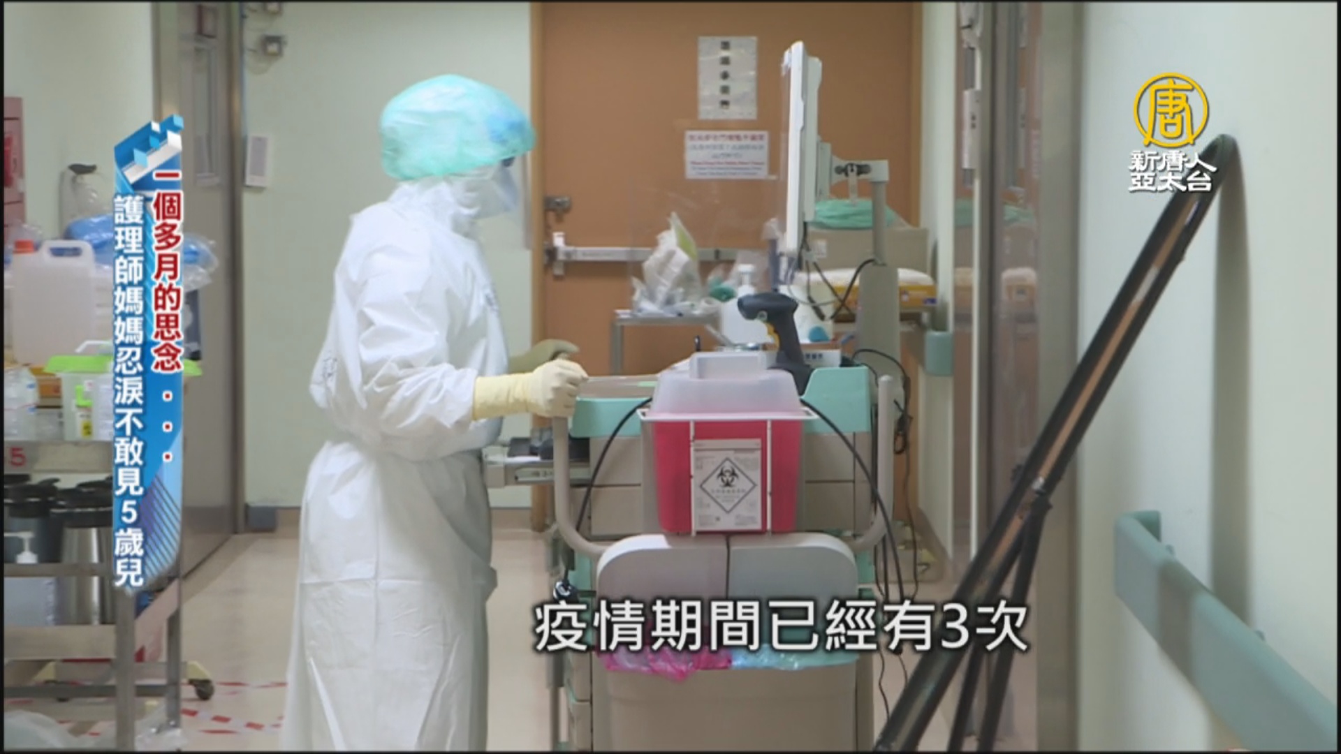 【新唐人亞太台 2021 年 07 月 17 日訊】疫情期間,許多醫護就怕把病毒帶回家,影響家人,就算有家也不敢回,北榮桃園分院有位負壓隔離病房的專任護理師鄒芳榆,雖然家有5歲兒子,但為了挺進抗疫最前線,已經3次,連續一個多月都住在醫院宿舍,只能跟兒子視訊,想念孩子的心酸令人不捨。