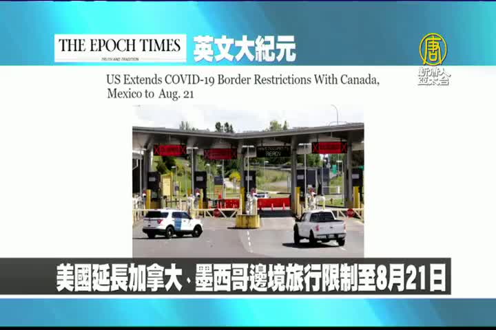 【新唐人亞太台 2021 年 07 月 22 日訊】首先來看到美國大紀元英文版報導:美國與加拿大和墨西哥的「陸路跨邊境旅行禁令」,延長至8月21日。