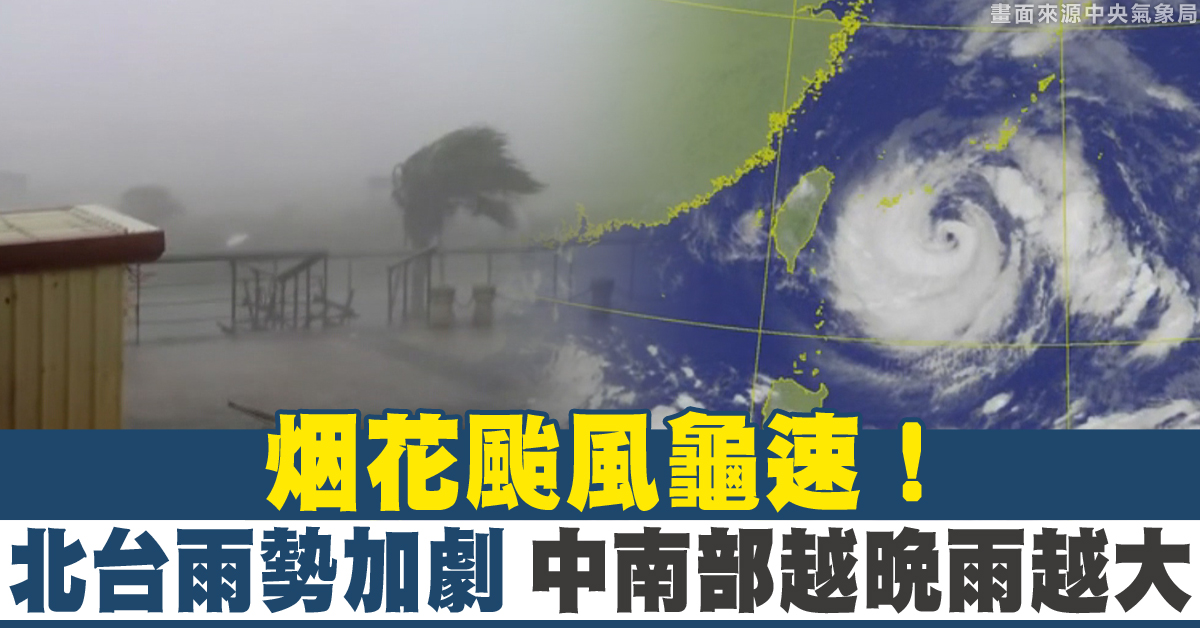 烟花颱風龜速!北台雨勢加劇 中南部越晚雨越大