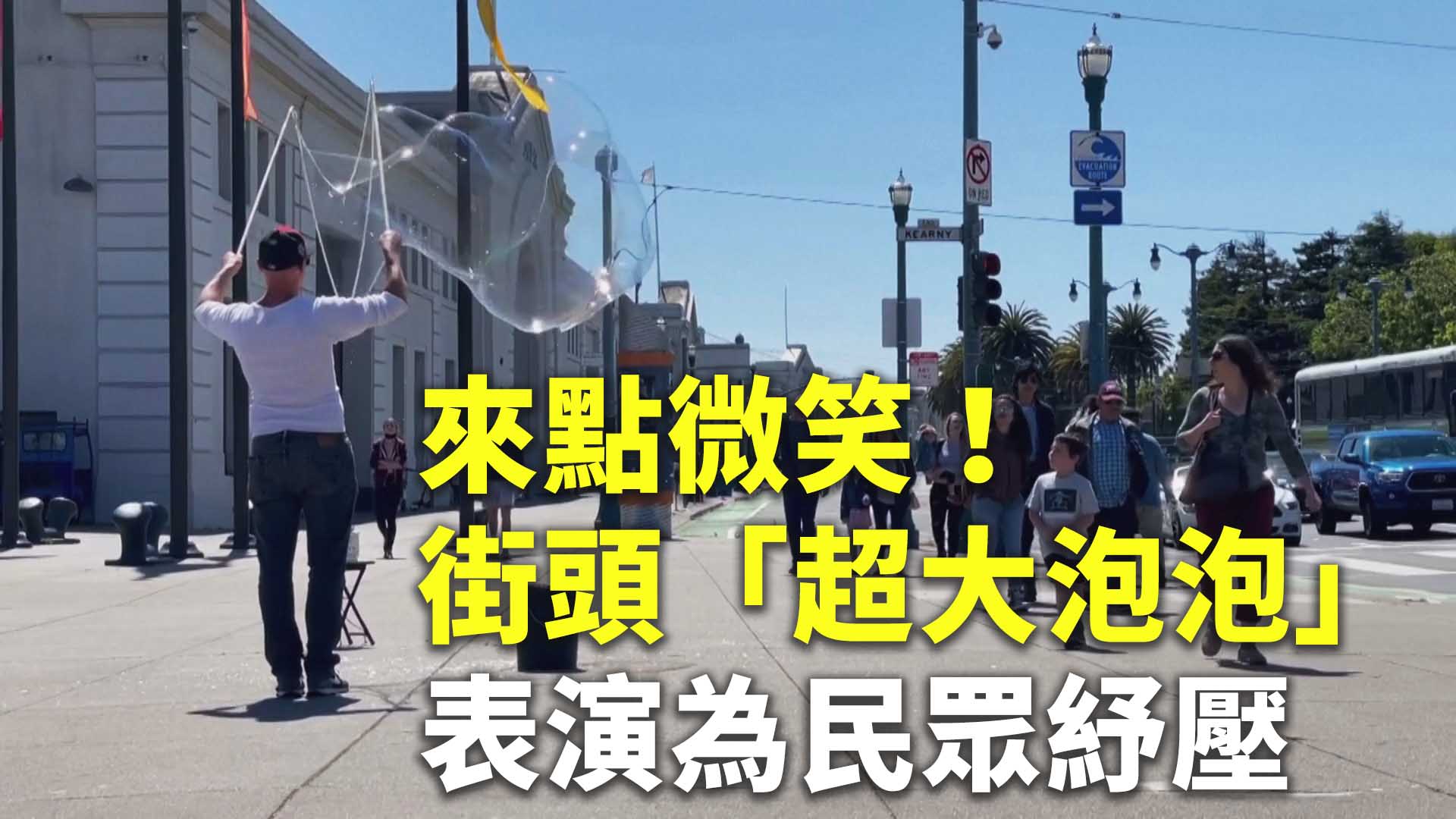 【新唐人亞太台 2021 年 07 月 23 日訊】在美國舊金山有一位非常熱衷製作肥皂泡泡的達人,每天會騎著三輪車到街頭空曠的地方做巨大又夢幻的泡泡, 為民眾減少疫情期間產生的壓力和負面情緒。
