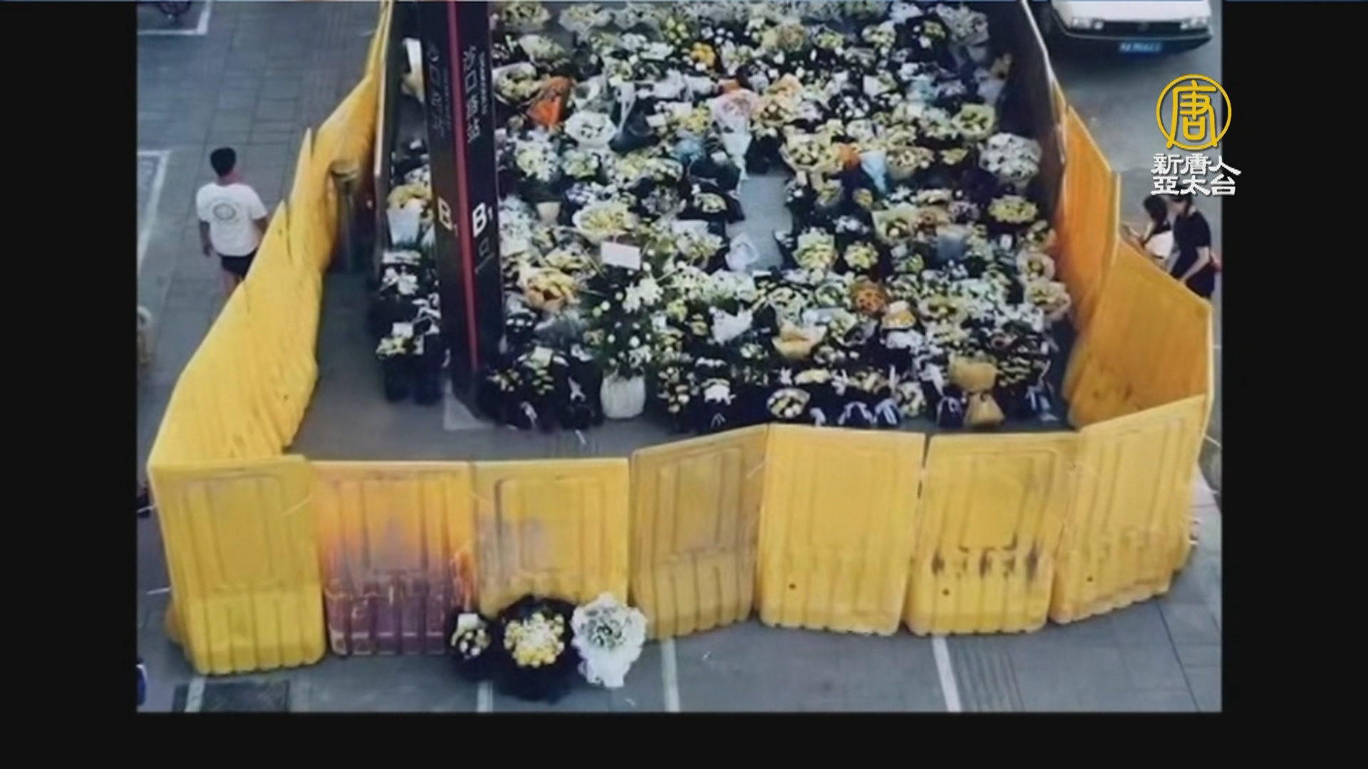 【新唐人亞太台 2021 年 07 月 27 日訊】7月20號,中國鄭州水災造成地鐵淹水事故後,沙口路站出口,每天都有市民前來獻花悼念,昨天(26日)是罹難者的頭七,大量的鮮花已經佔滿整個地鐵站出口,但周邊已經被人用圍欄擋住。讓網友憤怒表示「官方連鮮花都怕」。而根據中共官方稱,地鐵淹水事故造成12人死亡5人受傷,但沒有公布死傷者的名單。有網友不滿諷刺說「這12人的親朋好友好多」,還有網友質疑「會在這邊祭奠,估計死者的大體沒有還給家屬,直接就運走了吧。」