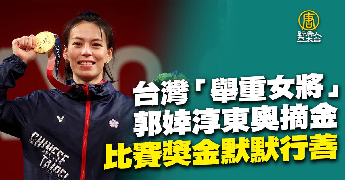【新唐人亞太台 2021 年 07 月 27 日訊】台灣「舉重女將」郭婞淳不負眾望,27日在東京奧運女子舉重59公斤級拿下中華隊第一面奧運金牌,不僅為自己和台灣體壇撐起一片天,也讓世界看到台灣。成名後的郭婞淳,除了每年捐助母校台東體中舉重隊獎助金之外,她還時常默默低調的做善事,行善不欲人知,時常用無名氏捐錢。