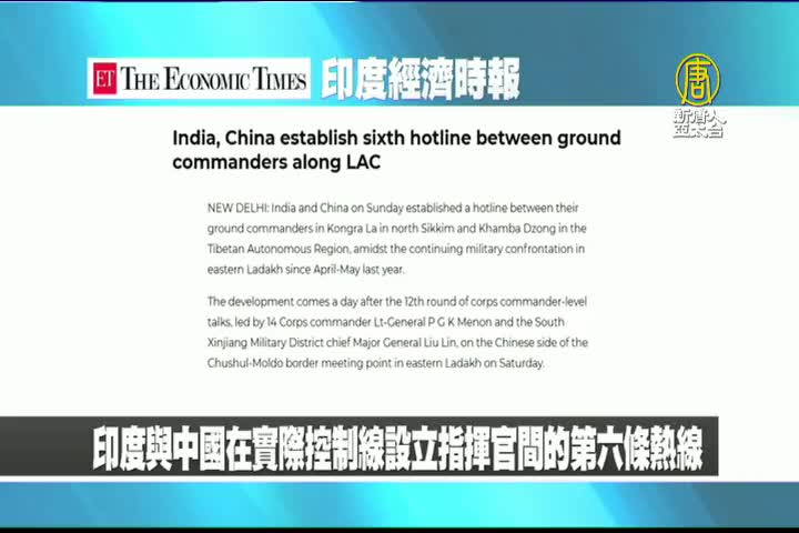 【新唐人亞太台 2021 年 08 月 02 日訊】來看到印度時報報導:中印邊境局勢再升溫,兩國在實際控制線設立指揮官間的第六條熱線。