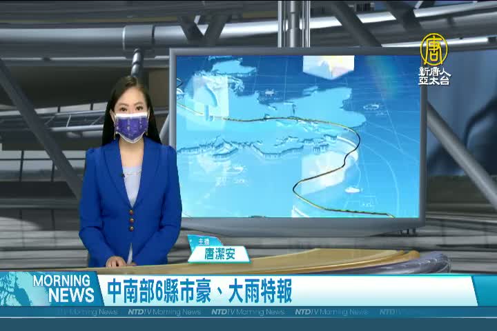【新唐人亞太台 2021 年 08 月 03 日訊】歡迎您收看8月3日的早安新唐人,我是唐潔安,先來帶您關心天氣。氣象局昨天(2日)深夜11點20分針對中南部6縣市發布豪、大雨特報,提醒民眾嚴防大雨、雷擊及強陣風。帶您一起來看到國際媒體重要訊息。