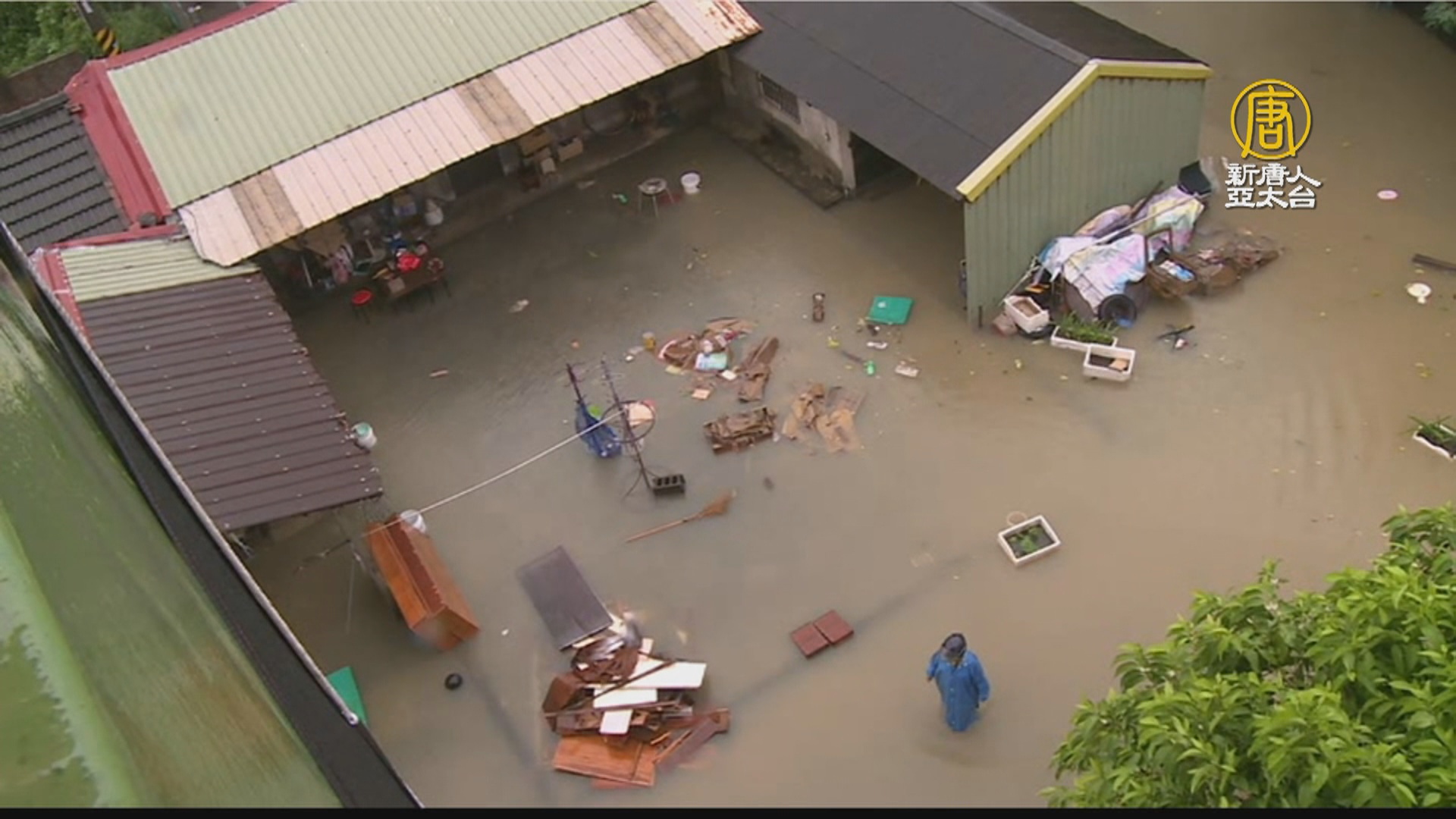 【新唐人亞太台 2021 年 08 月 06 日訊】歡迎回來。盧碧颱風降為熱低壓出海後,引進西南氣流,氣象局持續針對中南部沿海以及山區發布豪雨特報,瞬間大雨也讓西部沿海鄉鎮多處積水,彰化縣伸港鄉一處位處低窪的三合院淹大水,還有農民辛苦種植的香瓜與西瓜,也都泡水,損失慘重。