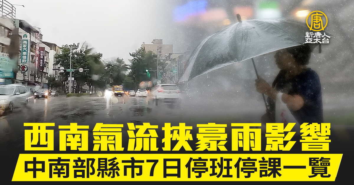 西南氣流挾豪雨影響 中南部縣市7日停班停課一覽(不斷更新)