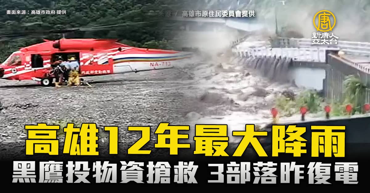 高雄12年最大降雨 黑鷹投物資搶救 3部落昨復電