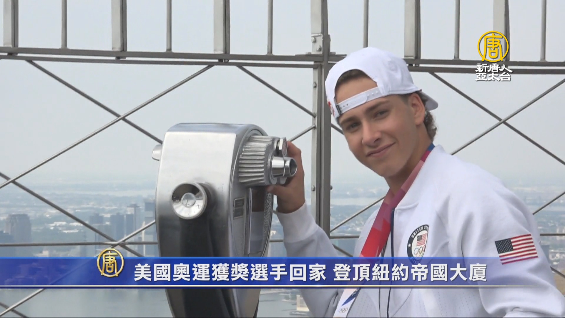 【新唐人亞太台 2021 年 08 月 11 日訊】東京奧運滑板項目中,獲得銅獎的美國選手「賈格爾·伊頓」,週二,受邀登頂紐約帝國大廈,來看報導。
