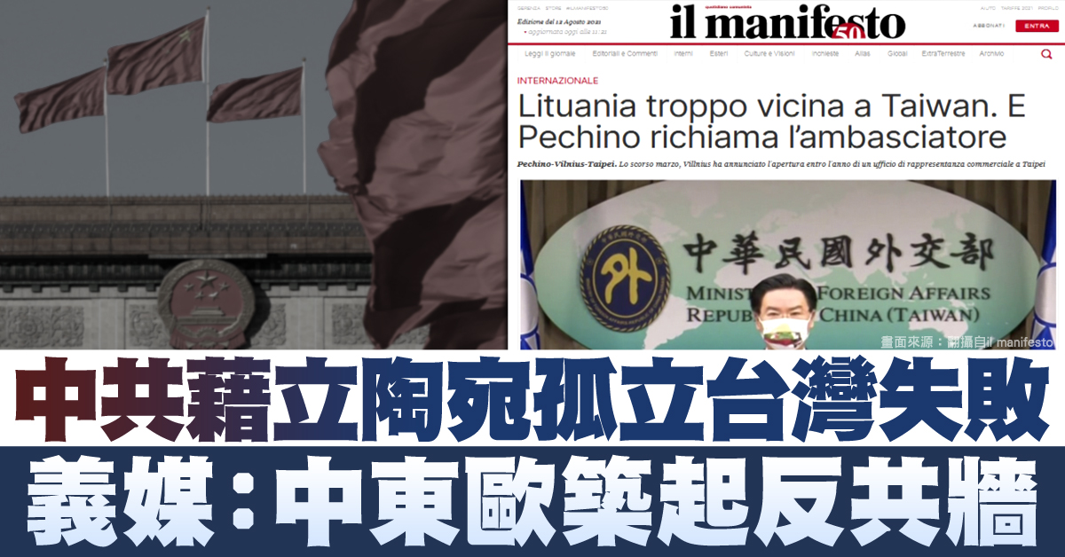 義大利媒體《宣言》日報,斗大標題寫著,「立陶宛和台灣太親近,北京召回大使。」報導中共召回駐立陶宛大使申知非的事件。並指出中東歐國家陸續宣布捐贈台灣疫苗,看來中東歐變成防堵中共勢力進軍歐洲的第一道圍牆。
