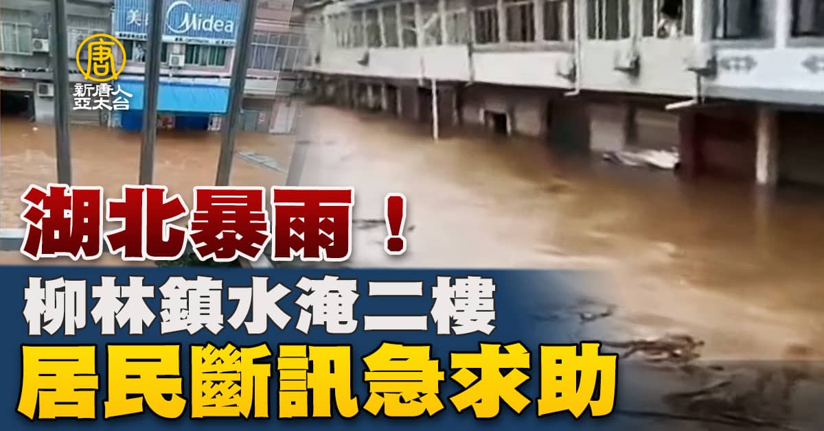 【新唐人亞太台 2021 年 08 月 12 日訊】再來關注中國消息,這兩天(11日、12日)湖北省隨州市降下暴雨,導致多個鄉鎮淹水,其中,位在柳林鎮的大橋街最嚴重,從網友拍下的影片可以看到,道路變成湍急的河流,水位逼近二樓,被困在樓上的人焦急的說,「水太大了,出不去,急需救援。」目前當地出現斷水、斷電,通訊也已中斷、有人員受困,但傷亡不明。