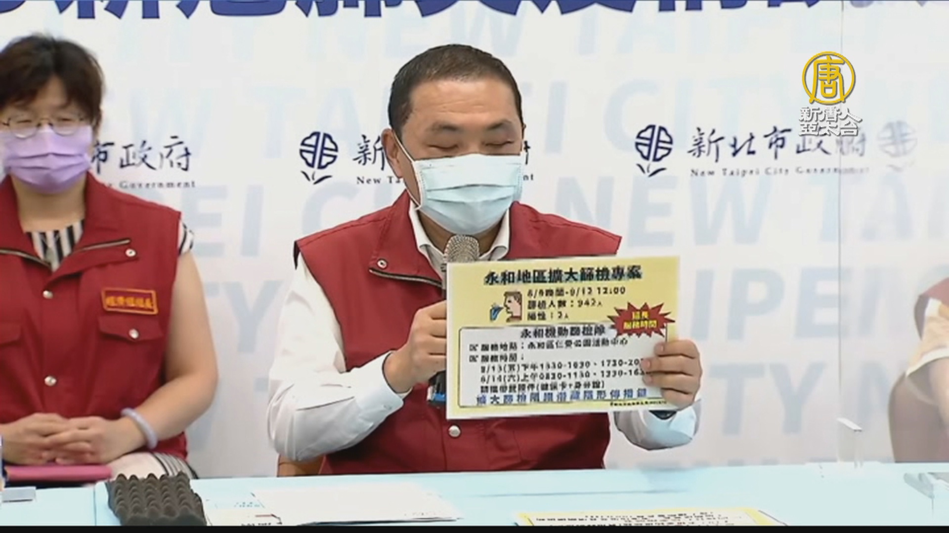 【新唐人亞太台 2021 年 08 月 12 日訊】來看到,今天新北市新增1例居家隔離轉陽的本土個案。新北市長侯友宜說,疫情控制得很穩定,持續往下走。除此,針對永和區發生大樓社區感染,則呼籲市民可以多前往篩檢。