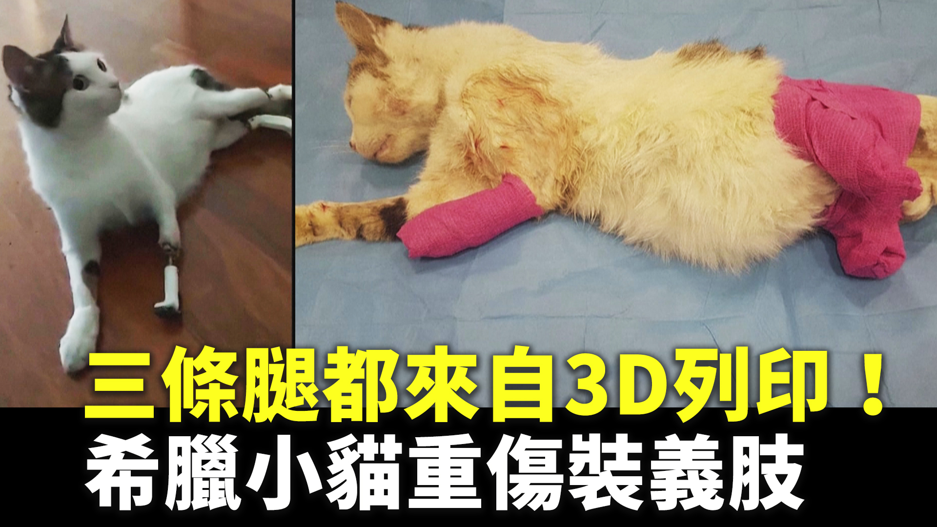 【新唐人亞太台 2021 年 08 月 13 日訊】希臘一隻流浪小貓,在一次重傷事件後只剩一條腿,無法行走。被送到獸醫診所後,經過漫長的復健,三條腿都裝上由3D列印打造的義肢,終於恢復行動能力。