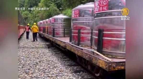 【新唐人亞太台 2021 年 08 月 14 日訊】西南氣流帶來豪大雨,造成嘉義縣山區不少道路崩塌,阿里山國家森林遊樂區內的祝山引水管線也多處破裂,以致對高岳車站廁所無水可用,林務局阿里山林業鐵路及文化資產管理展開緊急救援,啟用「平甲車」運送4噸水至對高岳車站,順利解決缺水問題。