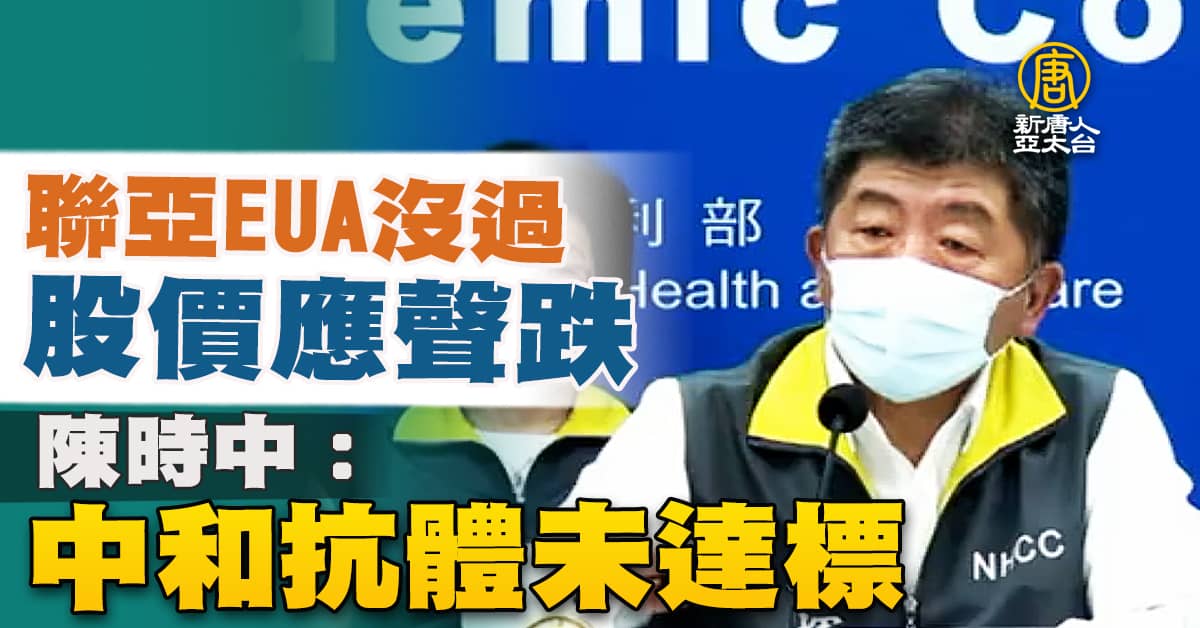 中央流行疫情指揮中心指揮官 陳時中:「很遺憾的,那個聯亞,聯亞疫苗的EUA在審查,昨天的審查的結果是沒有通過。」