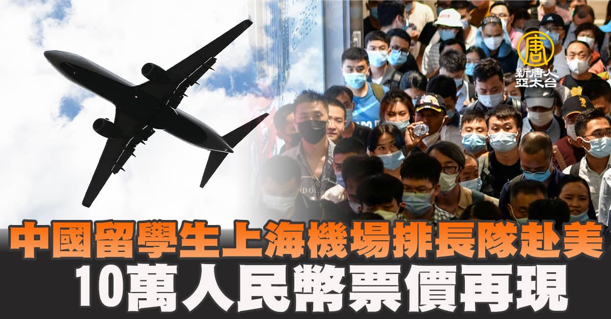 中國留學生上海機場排長隊赴美 10萬人民幣票價再現