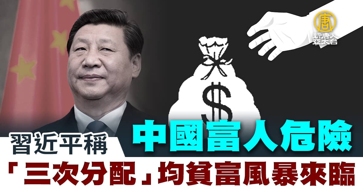 大陸經濟學家指出,「三次分配」就是「通過自願公益捐獻」來調節和平衡社會資源及財富。中共最早在2019年提出這一概念,作為從富人手中獲取財富和資源的手段。如今習近平再次強調「共同富裕」和「三次分配」,很可能意味著又一輪掠奪富人的「均貧富」風暴即將來臨。