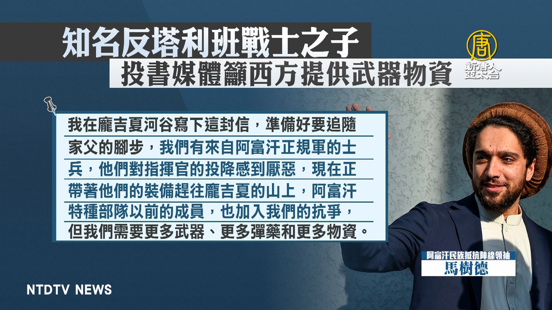 【新唐人亞太台 2021 年 08 月 20 日訊】阿富汗知名反塔利班戰士馬樹德之子,近日投書美國媒體表示,他有軍隊能夠對塔利班展開有效反擊,不過,他也呼籲西方國家給予他們武器和彈藥協助。