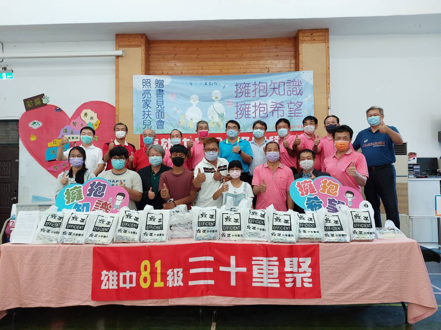 81級同學會表示,在家扶服務的家庭中,很多孩子具有升學傾向的需求,希望透過升學,考上好學校來翻轉人生,但因為參考書很貴,基於經濟原因,往往沒有預算或買不下手,為讓學生有參考書來練習,高雄中學81級同學會,在舉辦30重聚活動前夕,發起照亮家扶兒「擁抱知識 擁抱希望」的贈書專案,客製化想積極升學的家扶孩子所需要的參考書,由孩子自己開書單,再由同學會採購,讓台東家扶孩子不必煩惱書太貴買不下去。