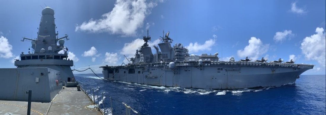 823這天美方宣布,美利堅號、與英國驅逐艦,20日還成功演練彼此海上加油,是突破性的海上補給。