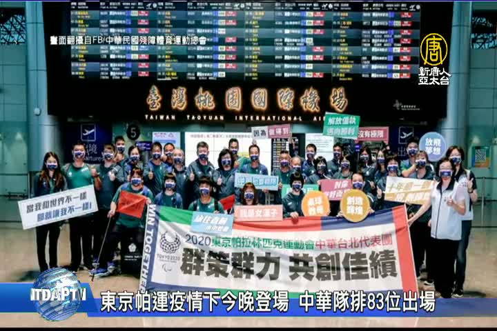 【新唐人亞太台 2021 年 08 月 24 日訊】東京帕運今晚7點舉行開幕典禮,這次進場與東京奧運一樣比照各隊日文發音排序,中華隊排在第83位出場,將由兩位視障選手楊川輝、劉雅婷共同擔任掌旗官,一共13名團員出席,人數比起東京奧運還要多3位。預計這次東京帕運將有來自161個國家或地區及難民代表團約4千5百名選手參與,創史上最多紀錄。但日本疫情持續嚴峻,目前跟帕運相關的確診病例,已經累計135人。