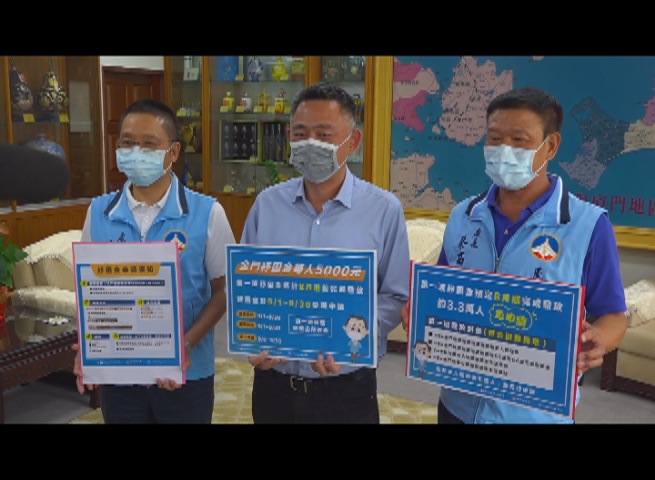 2021-07-30 19:47:46金門縣府會今天達成共識,將原本縣府規劃的3+3紓困金加振興券,加碼為普發紓困金新台幣5000元,視疫情狀況再發振興券3OOO元,預估需花11億餘元預算。
