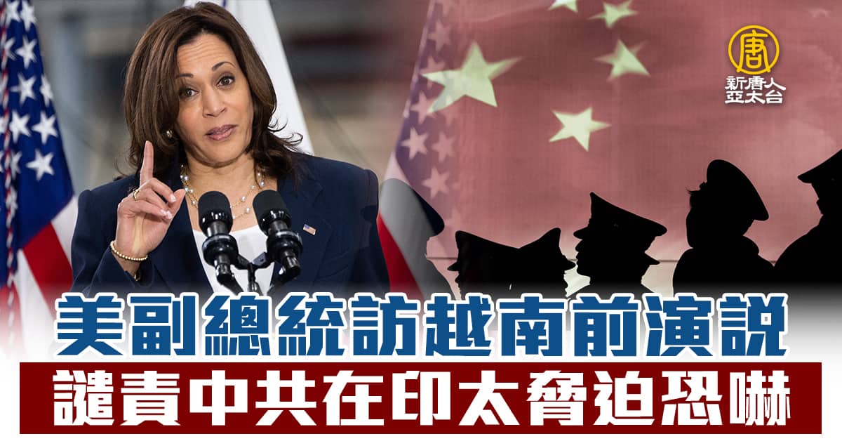 美國副總統賀錦麗訪問東南亞一週,24日抵達越南之前,她發表外交演說,嚴厲譴責中共在印太地區的「脅迫」與「恐嚇」行為,美國支持印太盟友維護主權。