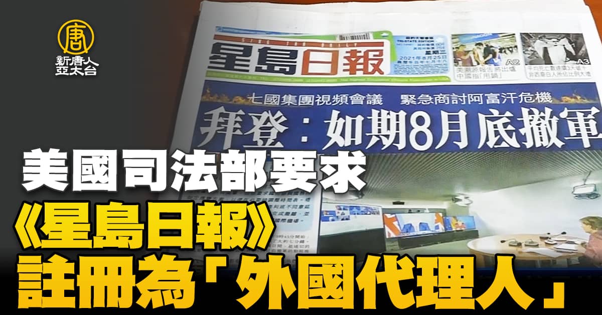 【新唐人亞太台 2021 年 08 月 26 日訊】美國司法部近年來加強了對外資媒體的審查,香港媒體《星島日報》在美國的分公司,近日就被美國司法部要求註冊為「外國代理人」,請看報導。