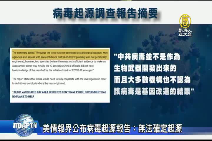 【新唐人亞太台 2021 年 08 月 28 日訊】拜登政府週五公布了美國情報部門對中共病毒起源的90天限期調查結果,結論是無法確定病毒起源地。