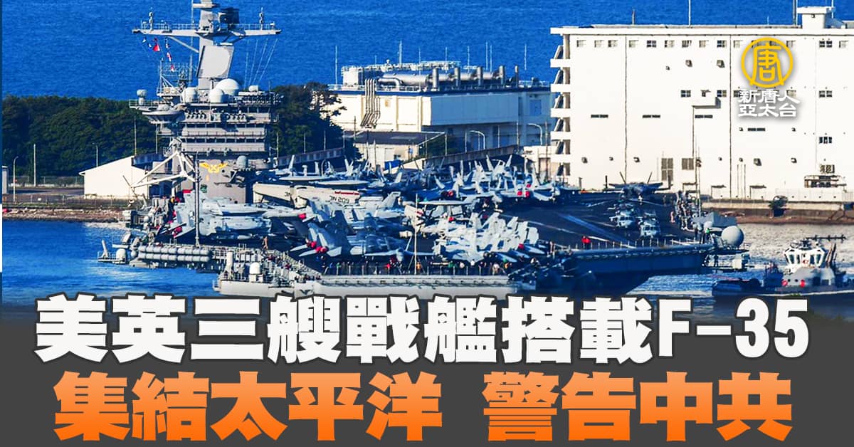 美英三艘戰艦搭載F-35集結太平洋 警告中共