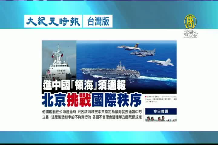 【新唐人亞太台 2021 年 08 月 31 日訊】接著看到大紀元時報台灣版報導:進入中共所謂的「領海」須通報,專家分析,北京當局公然挑戰國際秩序。