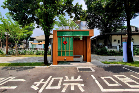 文化處表示,這兩座候車亭以台灣早期生活物件「菜櫥仔」、「老電視機」為發想,在不變動原有主結構前提下進行外觀包覆,將常民文化透過幽默童趣的風格呈現,並藉由視覺上的誇飾效果,復刻眷村生活記憶,與勝利星村整體環境氛圍相呼應,為園區增添打卡拍照景點。