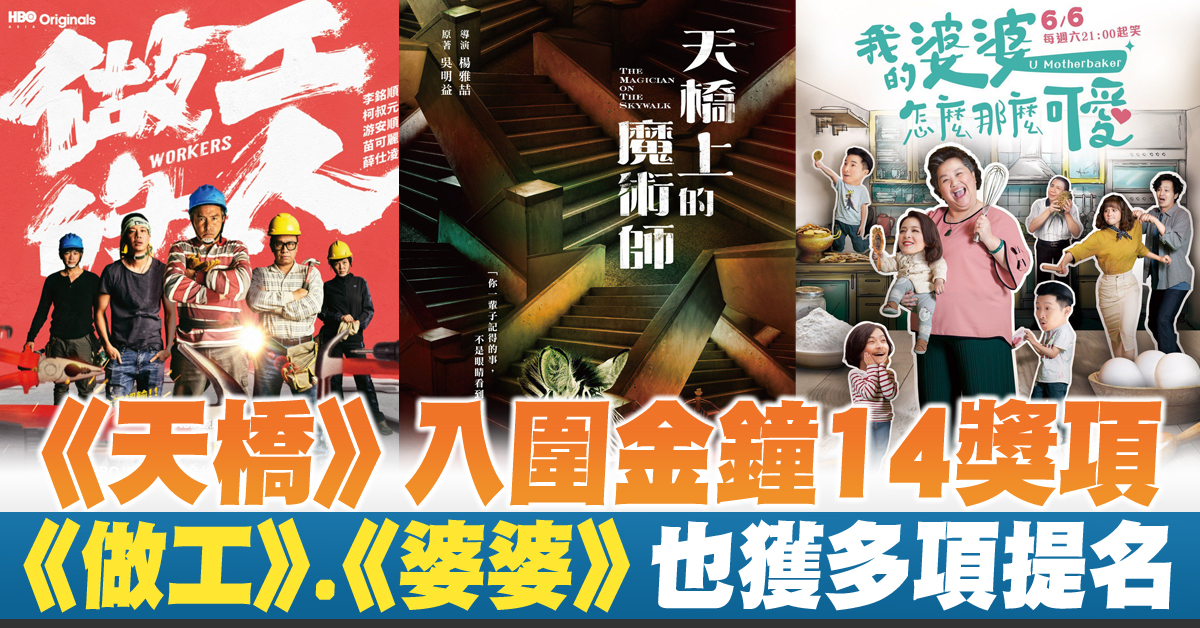 【新唐人亞太台 2021 年 09 月 02 日訊】歡迎回來,第56屆金鐘獎的入圍名單今天揭曉。台劇《天橋上的魔術師》獲得了14個獎項的提名,叫好叫座。《做工的人》以及《我的婆婆怎麼那麼可愛》,分別獲得9項與8項提名,緊追在後。而評審委員會主委曹瑞原也看好,接下來十年會是台灣影視產業的黃金十年。