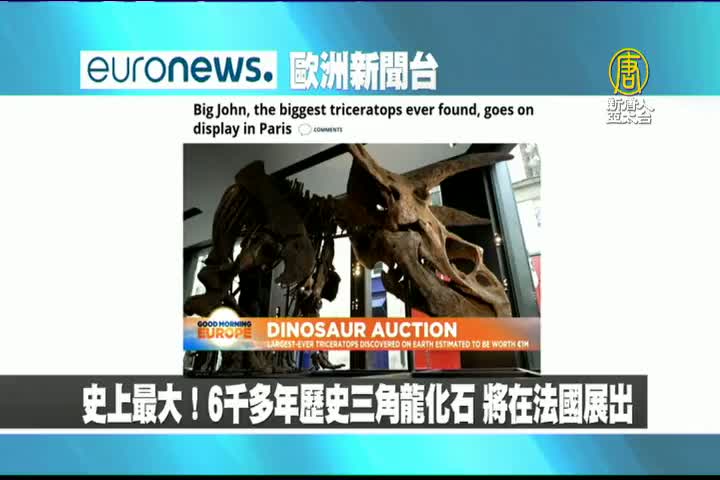 【新唐人亞太台 2021 年 09 月 03 日訊】來看到歐洲新聞台報導:史上最大!有6千6百年歷史的三角龍化石將在法國展出。