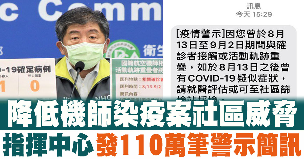 降低機師染疫案社區威脅 指揮中心發110萬筆警示簡訊