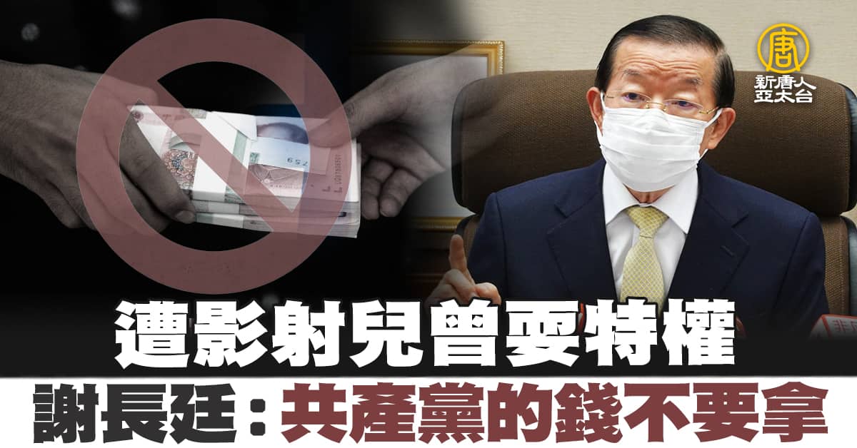 【新唐人亞太台 2021 年 09 月 06 日訊】化名「條子鴿」的退休警員表示曾有一名政二代闖紅燈還嗆警,疑似影射時任行政院長謝長廷的兒子。駐日代表謝長廷今天回應駐日台媒提問時說:「共產黨的錢不要拿。」