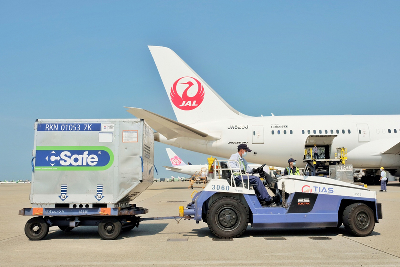日本捐贈台灣第4批6.4萬劑AZ疫苗7日下午由日本航空運抵桃園國際機場,班機落地後滑行停靠於D6機坪。(圖/中央社)