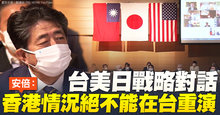 台美日戰略對話 安倍:香港情況絕不能在台重演