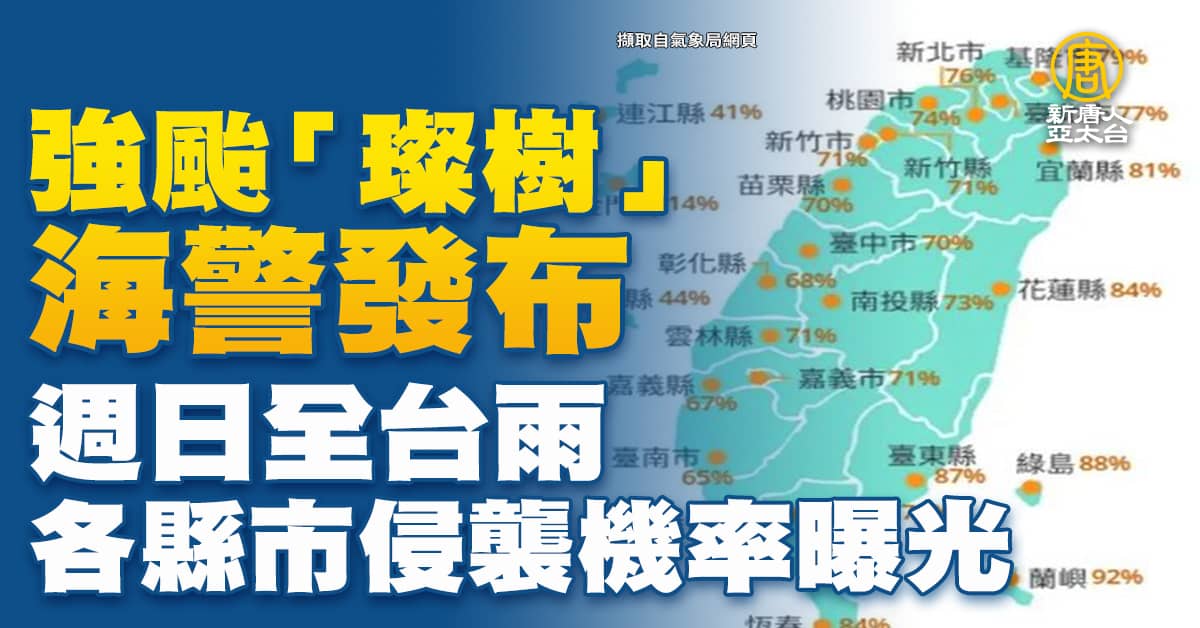 強颱「璨樹」海警發布 週日全台雨 各縣市侵襲機率曝光