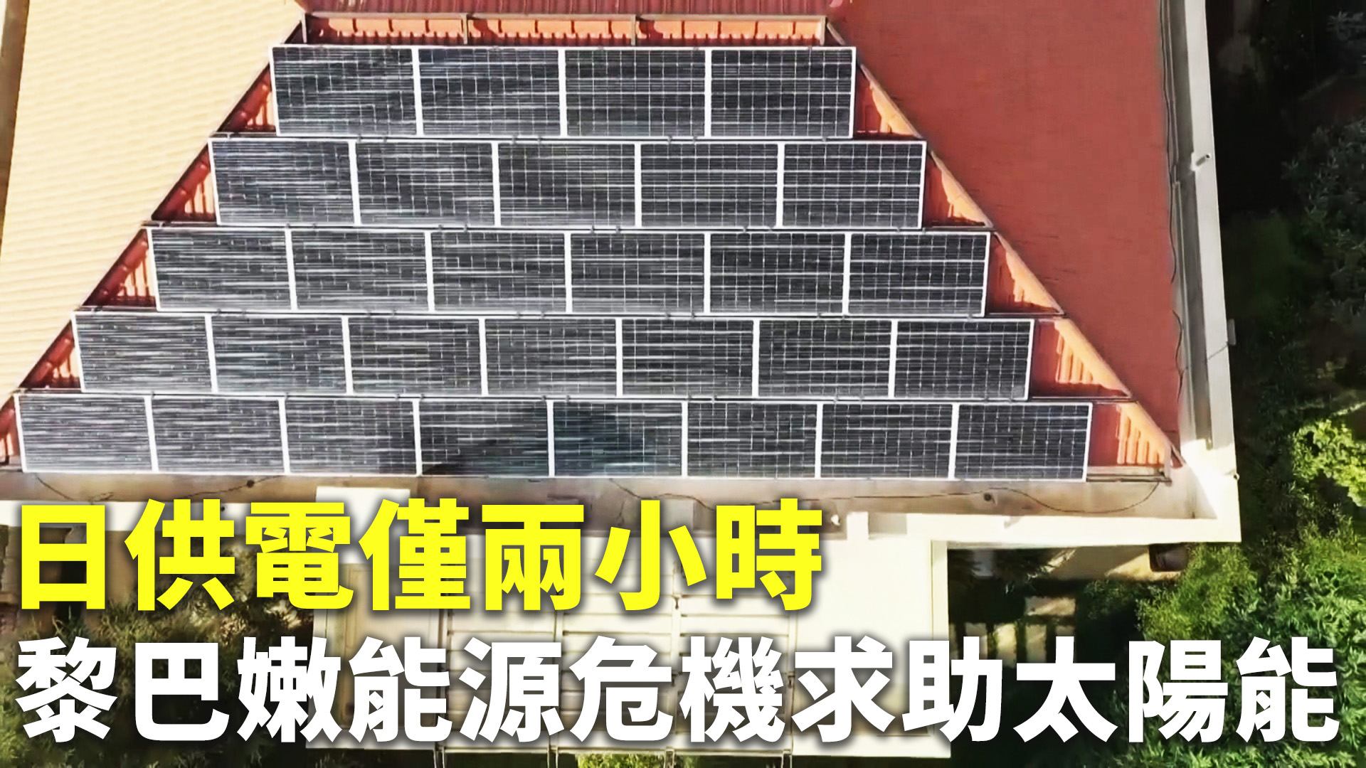 磚紅的屋頂貼滿一塊塊黑灰色的太陽能板,近幾個月,黎巴嫩正遭遇極為嚴重的燃料危機,能源缺乏,當地居民每天只有能獲得兩小時的供電,其餘時間皆在沒光、沒電的情況下生活,因此黎巴嫩居民紛紛在家中安裝太陽能板,借助太陽光解決缺電之苦。