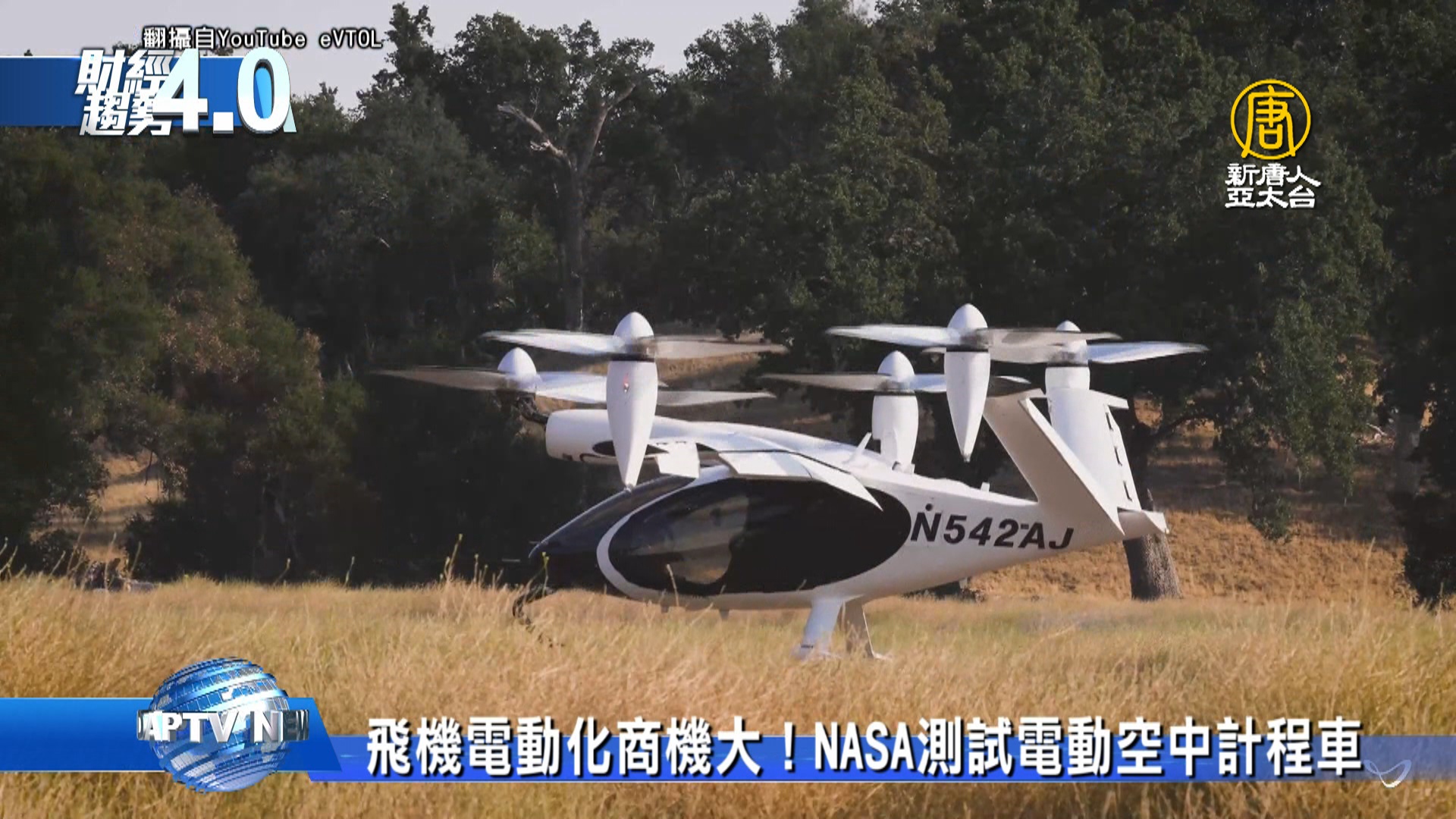 【新唐人亞太台 2021 年 09 月 11 日訊】好,那麼隨著電動車市場逐漸打開,電動飛機,也有望成為下一個兵家必爭之地嗎?近日,美國太空總署NASA在推特公告,正在測試由美國新創開發的一款電動計程車,目標要蒐集航空飛行器的穩定性與聲學數據,未來有望在城市和周邊地區,提供人們和貨物另一種運輸方式。