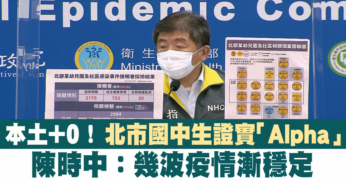 本土+0!北市國中生證實「Alpha」 陳時中:幾波疫情漸穩定