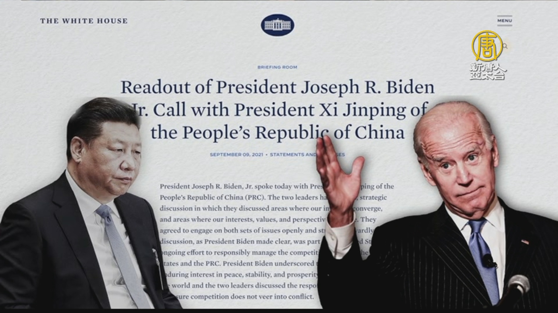 【新唐人亞太台 2021 年 09 月 11 日訊】在美中關係持續緊張之際,週四,拜登與習近平通話,這是兩人時隔7個月來的再度對話。分析指出,從目前美中動作來看,這一次的拜習通話,像是新一輪的競爭措施要出檯前,減震的舉動。