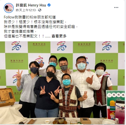 許富凱說,高雄是他的家鄉,也是擔任歌手的起點,對於家鄉農產他瞭如指掌,希望能透過這一次的直播活動,推薦給大家(許富凱臉書截圖)