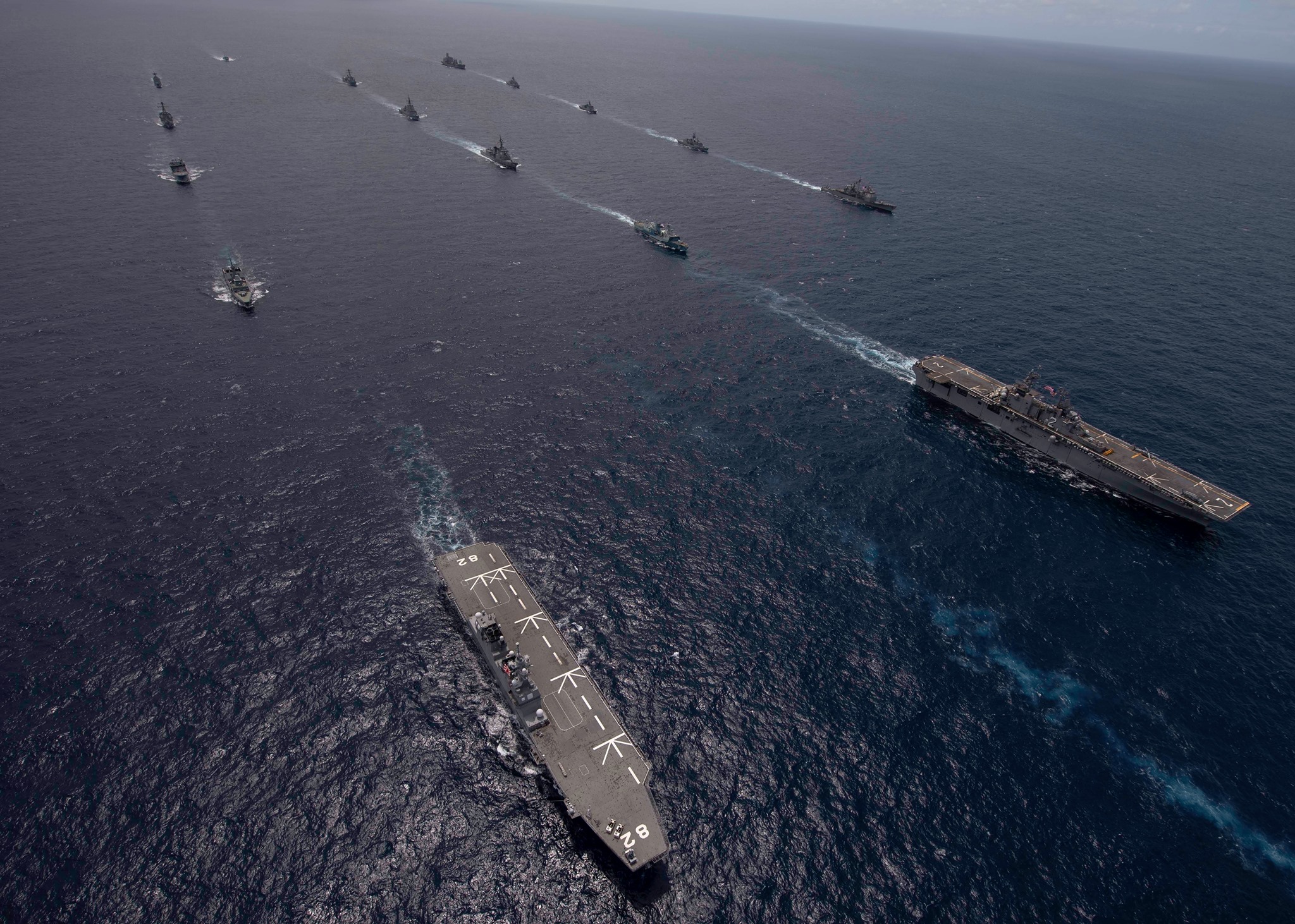 美國眾議院預計下週針對2022財政年度國防授權法案進行討論與表決。根據法案,國會建議美國國防部邀請台灣參加2022年環太平洋軍演。圖為2020年環太平洋軍演。(圖/翻攝自臉書@RimofthePacific)