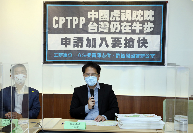 【新唐人亞太台 2021 年 09 月 16 日訊】民進黨立委邱志偉、許智傑今天指出,為避免中國搶先台灣加入「跨太平洋夥伴全面進步協定」(CPTPP),恐使台灣被排擠於亞太區域經貿體系之外,呼籲相關單位抓緊國際友台機遇,順勢推動台灣於今年正式申請加入CPTPP。