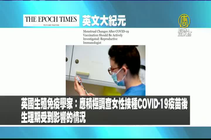 【新唐人亞太台 2021 年 09 月 17 日訊】首先來看到美國大紀元英文版報導:英國生殖免疫學家表示,應積極調查女性接種COVID-19疫苗後,生理期受到影響的情況。