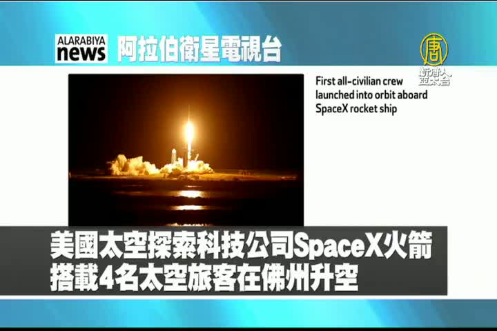 【新唐人亞太台 2021 年 09 月 17 日訊】最後看到阿拉伯衛星電視台報導:美國太空探索科技公司SpaceX火箭,搭載4名太空旅客在佛州升空。