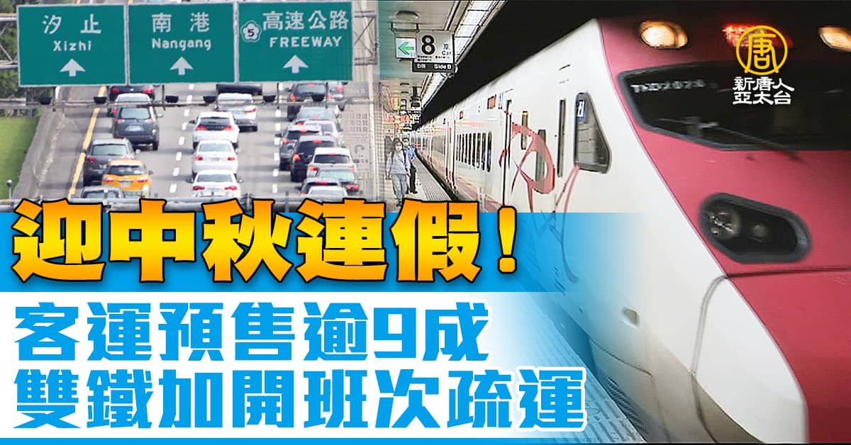 【新唐人亞太台 2021 年 09 月 17 日訊】迎接中秋四天連假,台灣的國道客運業者和旅遊預訂平台,推出折扣優惠,熱門路線在週五和週六的預售已超過90%,雙鐵運量也爆增,台鐵尖峰時段售出90%車票,加開137個列次,高鐵也加開184班次,紓解返鄉人潮。